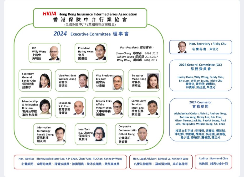 香港保險中介行業協會的架構旨在支持和促進整個保險行業的健康發展。這一結構體現了對成員的支持、行業標準的提升,以及對持續教育的承諾。不同的部門和小組專注於具體領域,如會員服務、行業事務和大中華事務,使協會能夠靈活應對行業挑戰,同時為會員提供全方位的支持和資源。香港保險中介行業協會通過這一堅固的組織架構,致力於引領業界走向更加專業和可持續的未來。