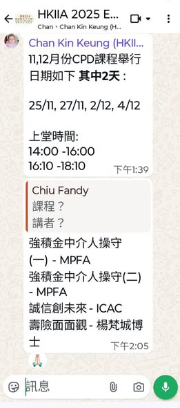 正在規劃11月底的CPD課程,今次會包括 MPF
